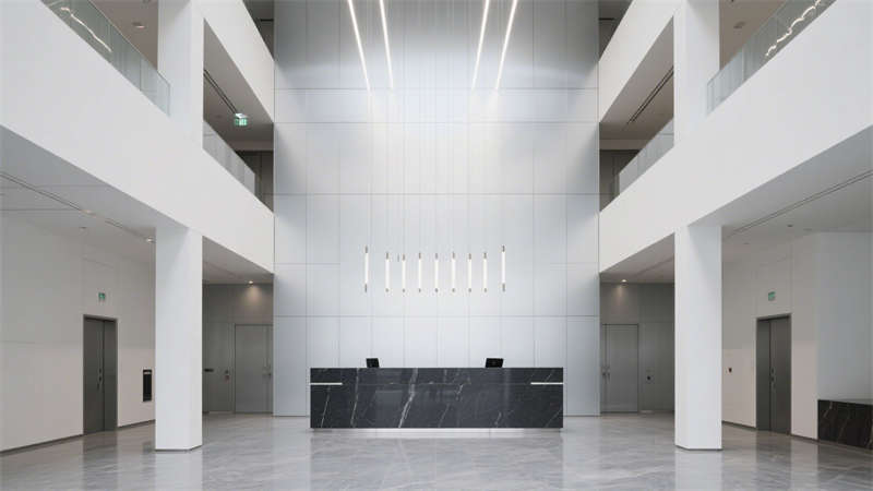 本設(shè)計(jì)圍繞現(xiàn)代簡(jiǎn)約風(fēng)格展開(kāi),從室外到室內(nèi)形成統(tǒng)一的視覺(jué)體系。室外效果圖呈現(xiàn)出簡(jiǎn)潔大氣的建筑外觀,線條流暢利落,色彩搭配沉穩(wěn)雅致,既符合辦公場(chǎng)所的專業(yè)氣質(zhì),又能在周邊環(huán)境中展現(xiàn)獨(dú)特辨識(shí)度。?