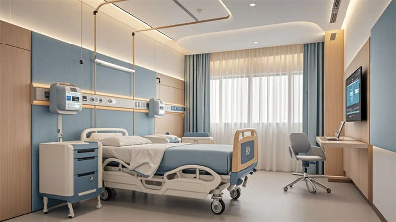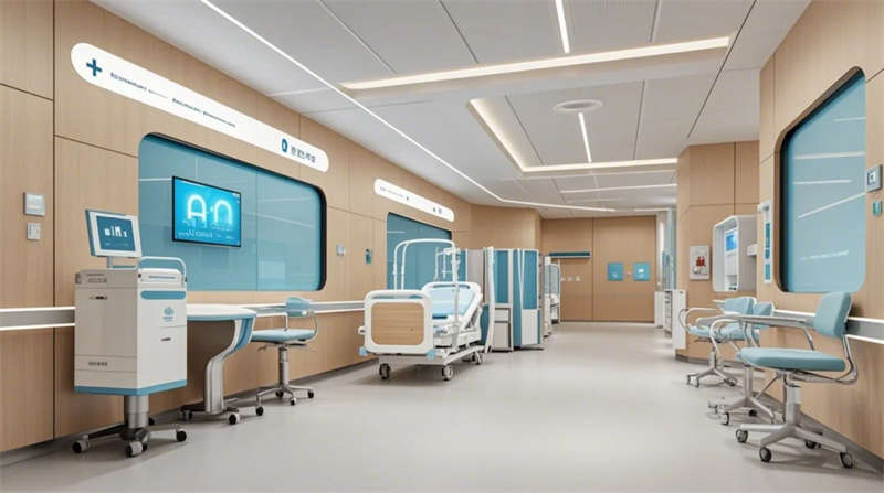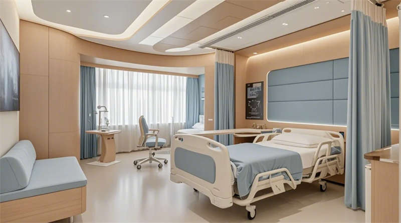 門診大廳以8米挑高空間構(gòu)建醫(yī)療門戶形象,曲面導(dǎo)診臺與智能分診系統(tǒng)形成高效服務(wù)樞紐,木紋格柵吊頂與綠植景觀墻弱化傳統(tǒng)醫(yī)院的冰冷感。兒科診區(qū)創(chuàng)新運用馬卡龍色系與云朵軟包墻面,互動投影游戲區(qū)搭配動物主題診療設(shè)備,構(gòu)建兒童友好型醫(yī)療環(huán)境。VIP病房采用全景落地窗與智能護(hù)理系統(tǒng),可變形家具滿足陪護(hù)與康復(fù)雙重需求,展現(xiàn)高端醫(yī)療的溫度感。