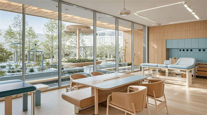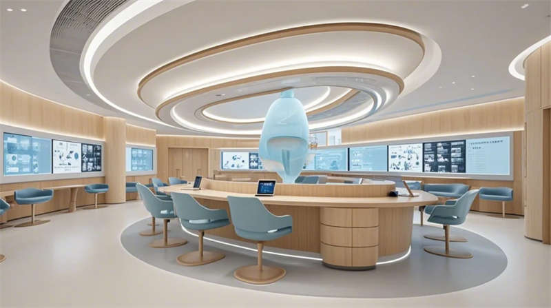 空間設(shè)計深度融入院感防控要求,全區(qū)域采用環(huán)氧樹脂自流平地膠與抗倍特抗菌板材,醫(yī)技區(qū)雙通道設(shè)計實現(xiàn)潔污分流。智能系統(tǒng)貫穿全場景:手術(shù)等候區(qū)的動態(tài)光環(huán)境調(diào)節(jié)、康復(fù)花園的感應(yīng)式照明、急診通道的電子玻璃隔斷,彰顯科技醫(yī)療時代特征。設(shè)計團(tuán)隊特別注重心理療愈,270度觀景等候區(qū)、水景冥想花園、減壓藝術(shù)裝置等創(chuàng)新節(jié)點,重構(gòu)了傳統(tǒng)醫(yī)療空間體驗,塑造兼具專業(yè)信賴感與情感溫度的新型現(xiàn)代醫(yī)院范本。