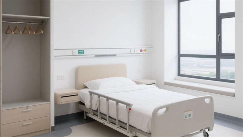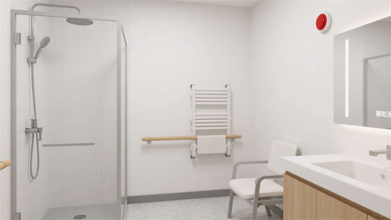 居住房間內(nèi),家具選擇圓角設(shè)計,減少意外碰撞帶來的傷害;床頭設(shè)置緊急呼叫按鈕,方便老人在需要時快速尋求幫助,按鈕位置高度適中,便于老人伸手觸碰。室內(nèi)采光充足,搭配柔和的照明系統(tǒng),避免強光刺激老人眼睛,同時保證夜間行走時的光線亮度。色彩搭配以溫暖柔和的色調(diào)為主,營造溫馨舒適的居住氛圍,幫助老人緩解焦慮情緒,更快適應(yīng)養(yǎng)老院的生活環(huán)境。整體設(shè)計在滿足適老化功能需求的同時,兼顧現(xiàn)代風(fēng)格的美觀與實用性,為老人提供一個安全、舒適、溫馨的居住空間。