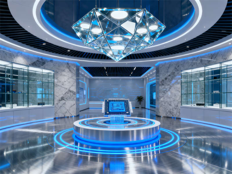 本設計以半導體行業(yè)的科技屬性為核心,打造出兼具專業(yè)性與體驗感的展廳空間。整體裝修風格采用簡約現(xiàn)代風,以冷靜的淺灰色為主色調(diào),搭配科技感十足的藍色線條與燈光,營造出符合半導體領域嚴謹、前沿的氛圍,同時讓整個展廳在視覺上保持統(tǒng)一和諧,從入口到各個功能區(qū)域,風格過渡自然,不存在突兀感。?