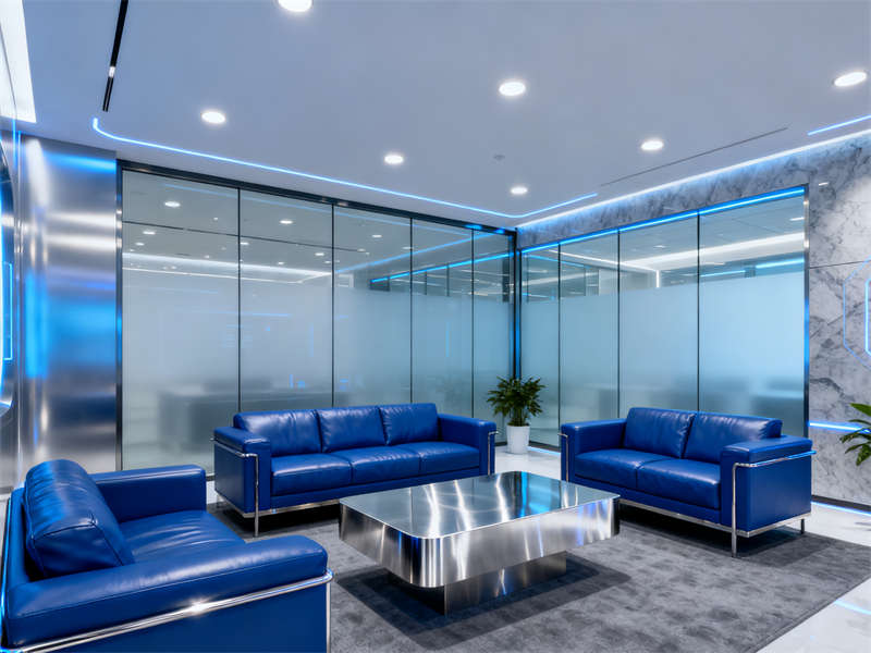 此外,展廳還規(guī)劃了技術(shù)講解區(qū)與洽談區(qū),兩處區(qū)域的裝修在保持整體風格一致的前提下,通過軟裝搭配進行區(qū)分——技術(shù)講解區(qū)配備簡潔的多媒體設備與階梯式座椅,方便開展小型技術(shù)分享;洽談區(qū)則以舒適的沙發(fā)與矮桌為主,營造出輕松的溝通氛圍,整體設計既滿足了展示、交流等功能需求,又充分彰顯了半導體企業(yè)的專業(yè)形象與品牌氣質(zhì)。